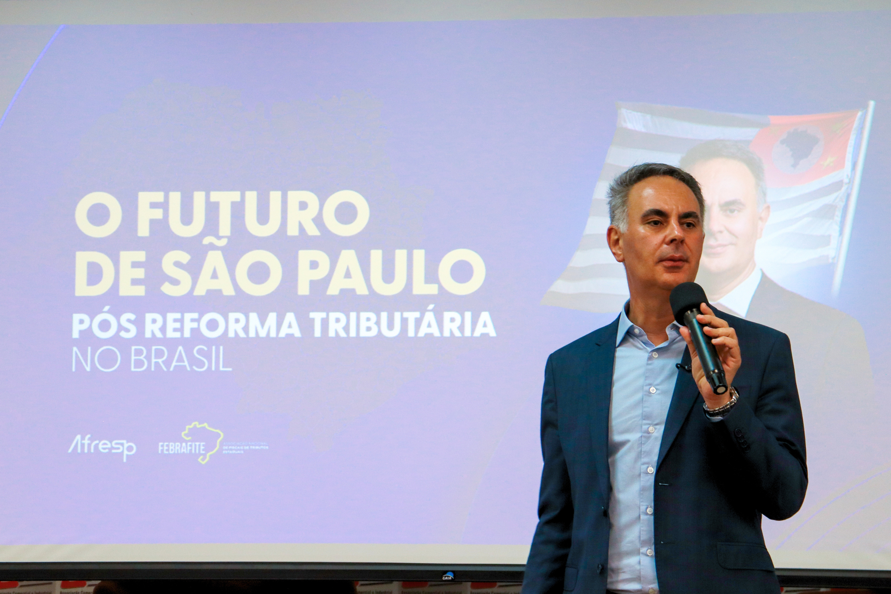 Rodrigo apresentou o tema “O Futuro de São Paulo Pós-Reforma Tributária no Brasil”, abordando os principais pontos da proposta e seus possíveis impactos no cenário econômico e empresarial.