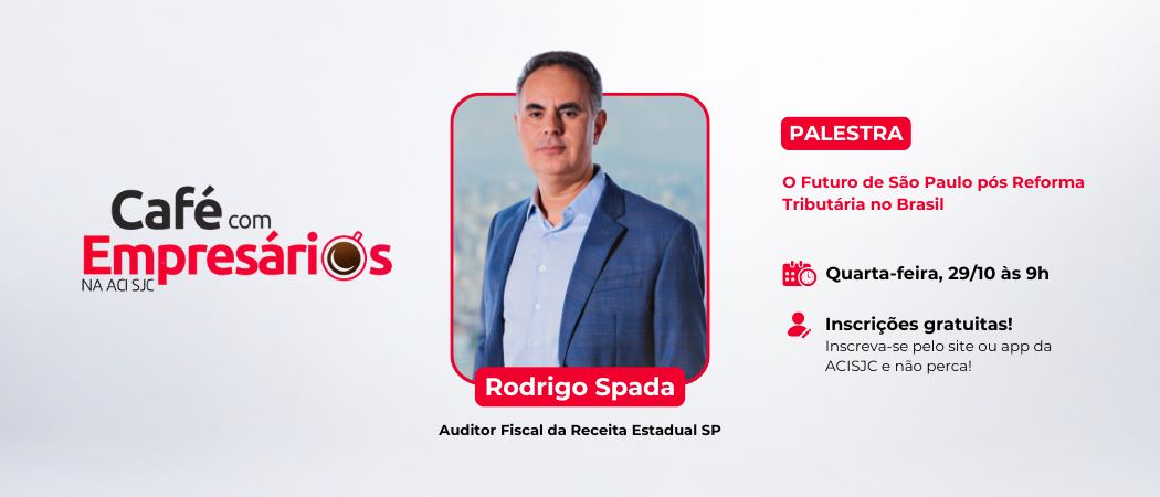 Rodrigo Spada, palestrante dessa edição, falará sobre “O Futuro de São Paulo, pós reforma tributária no Brasil”. O evento é gratuito e aberto a empresários, profissionais e autoridades da região.