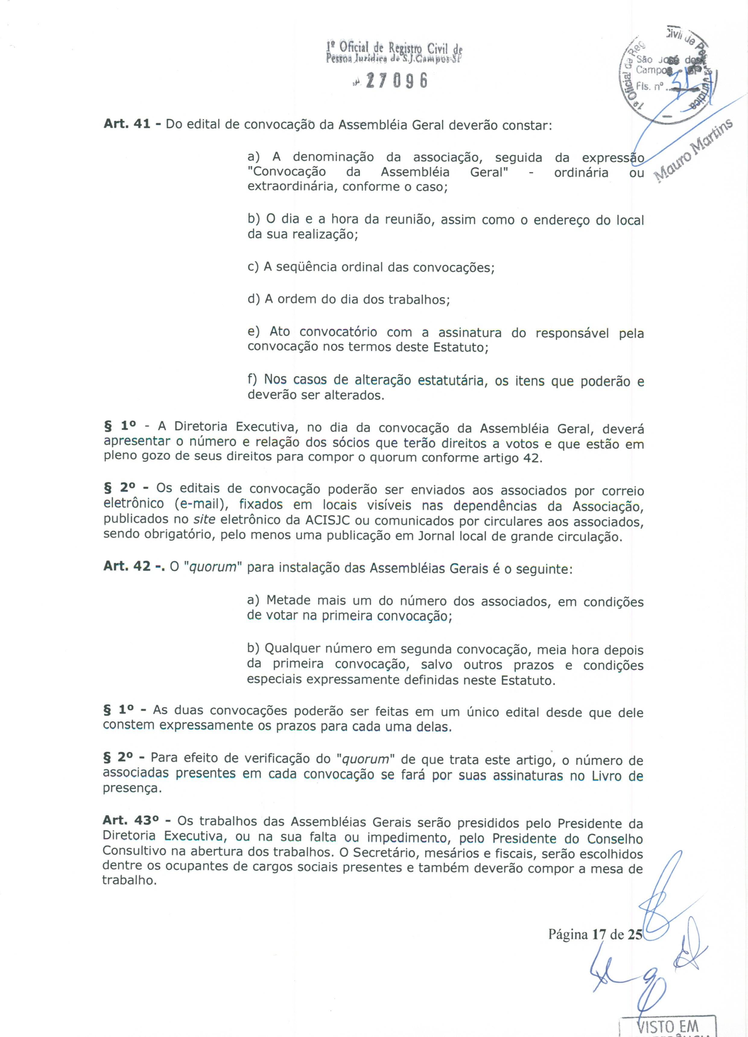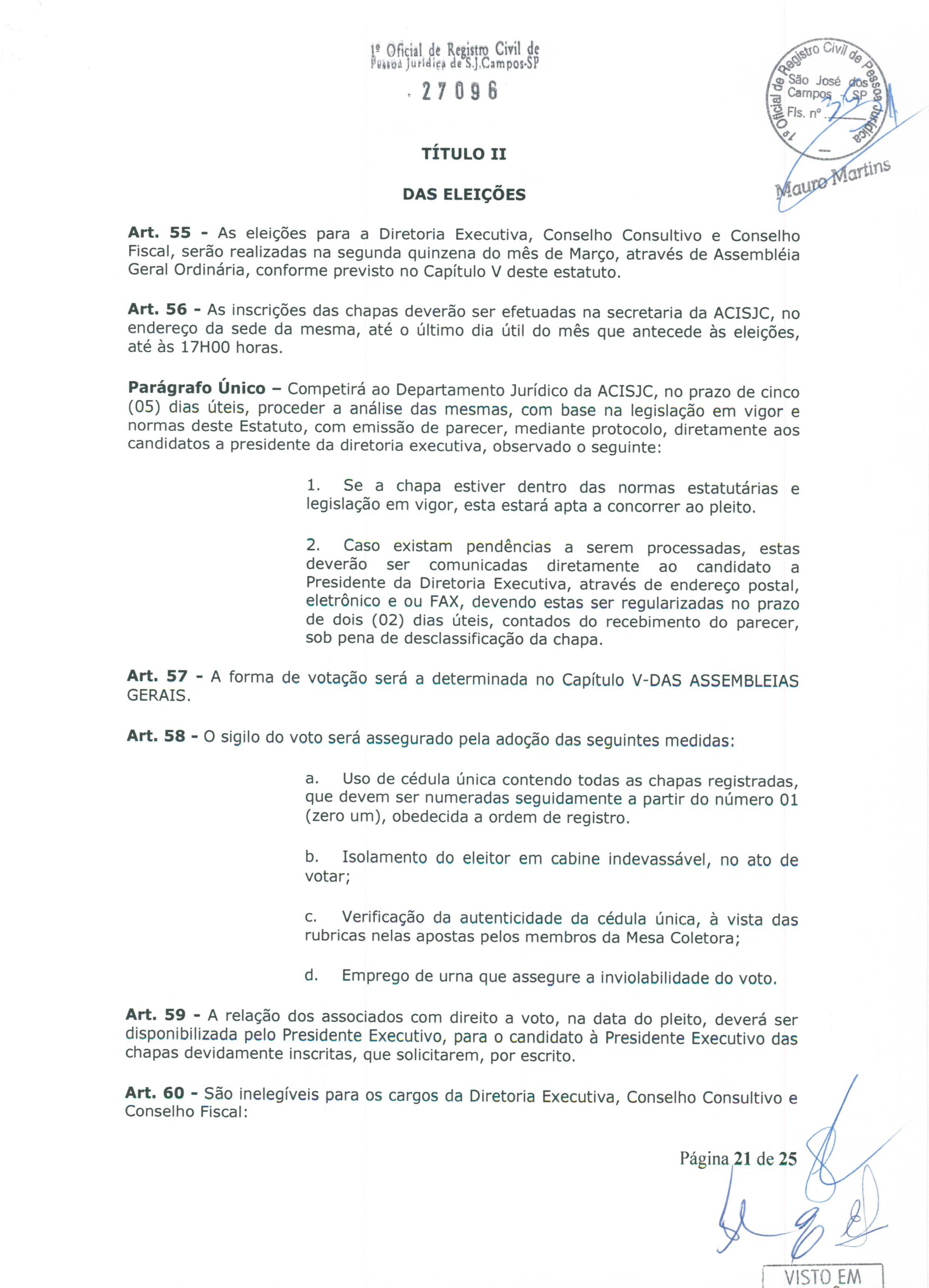 Leia na íntegra o Estatuto Social da ACI de São José dos Campos
