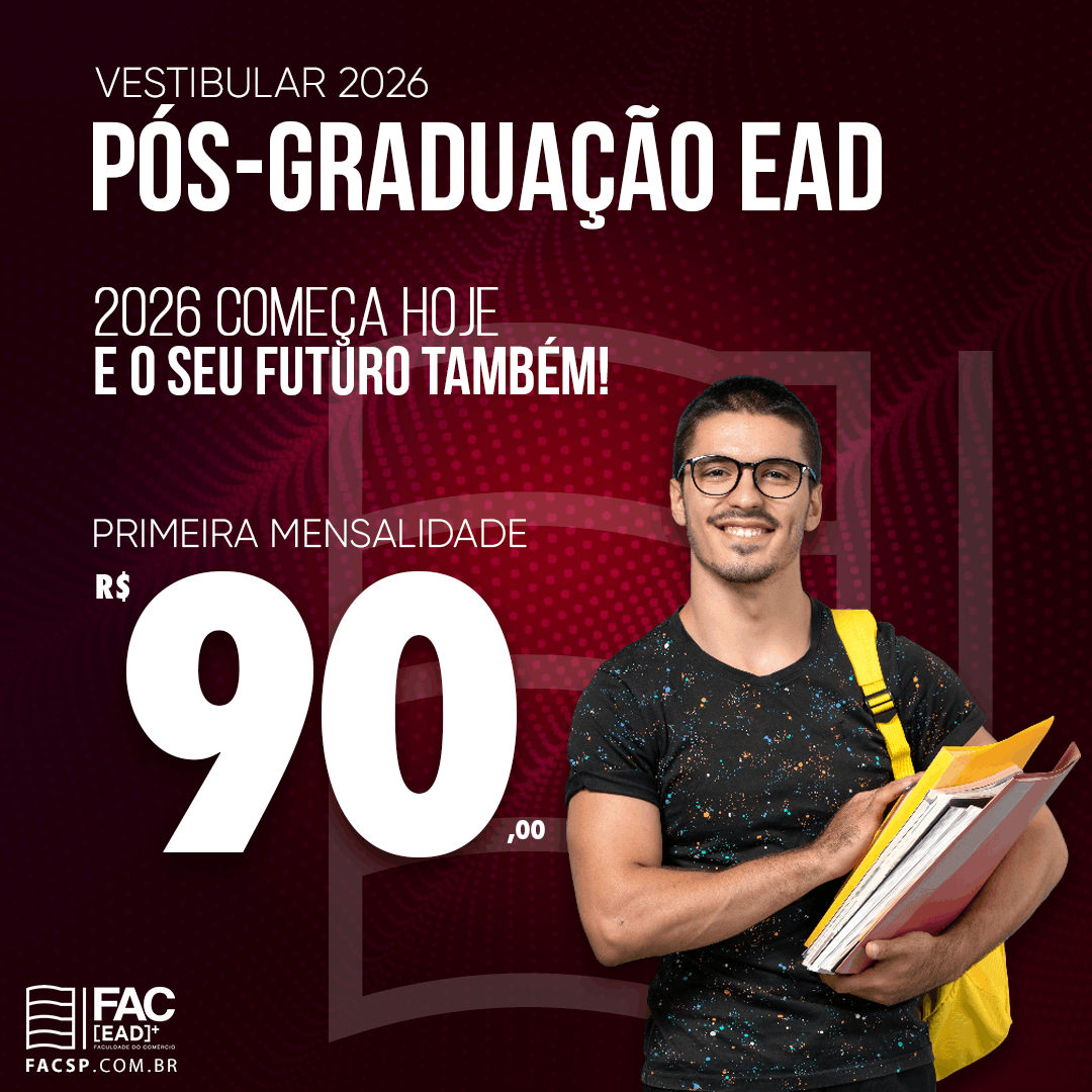 Na FAC, você encontra cursos de pós-graduação com conteúdos atualizados e um corpo docente de excelência, preparados para te levar mais longe no mercado de trabalho.