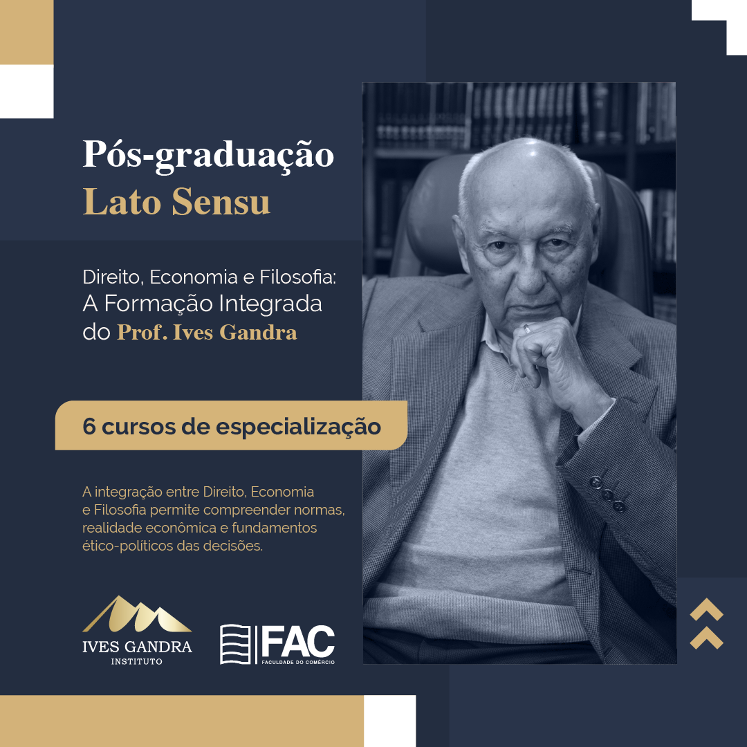 A Faculdade do Comércio (FAC), em parceria com o renomado jurista Ives Gandra da Silva Martins, lança 6 cursos de Pós-Graduação de alto nível. Unindo Direito, Economia e Filosofia, as especializações foram desenhadas para formar líderes capazes de atuar com visão estratégica e ética no cenário corporativo atual.