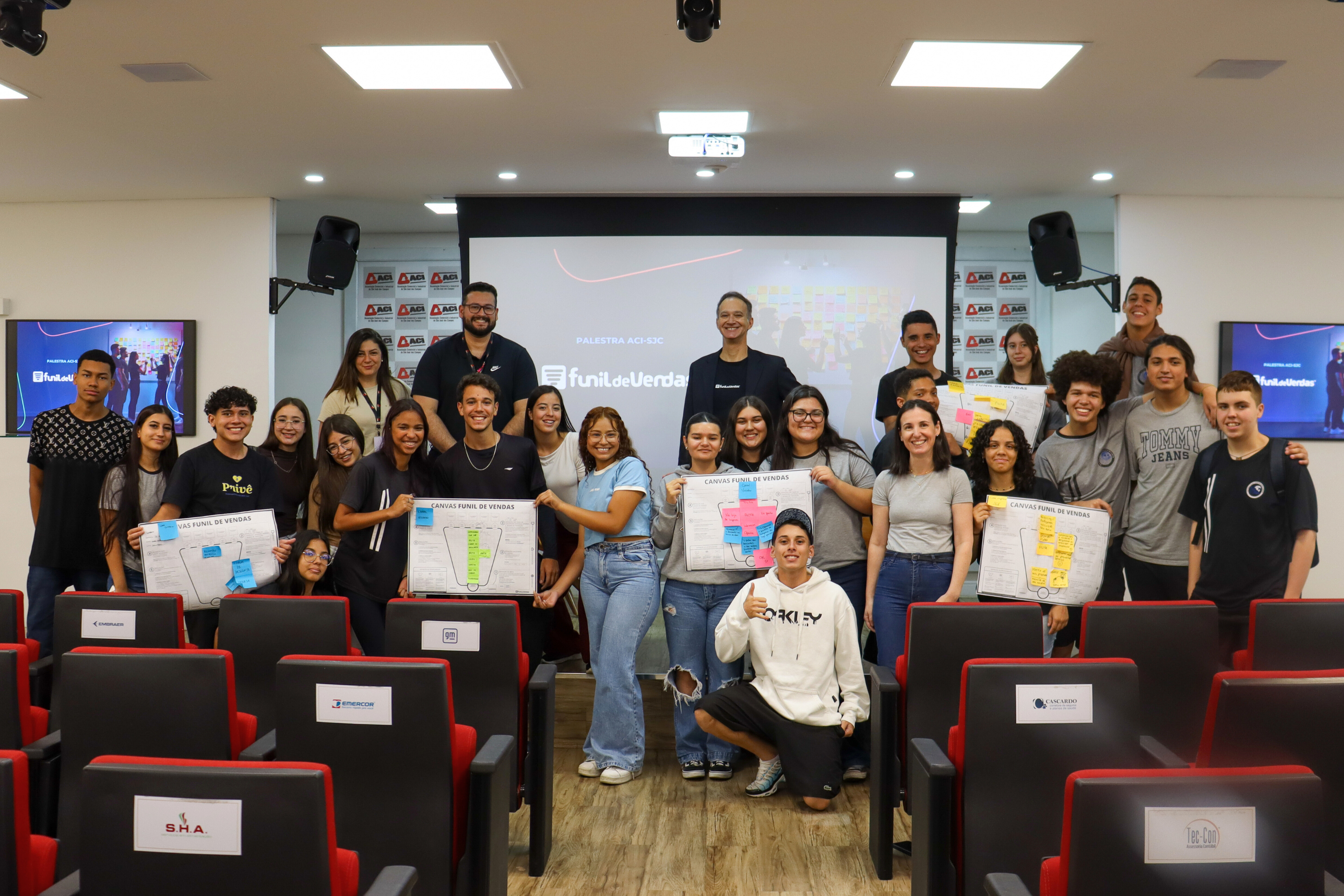 O encontro contou com a palestra “Funil de Vendas”, ministrada por Ricardo Rossetto, especialista e representante do Funil de Vendas SJC. Durante a apresentação, os estudantes tiveram a oportunidade de conhecer conceitos essenciais sobre vendas, entender os diferentes perfis de clientes e explorar estratégias práticas para alcançar melhores resultados no ambiente comercial.